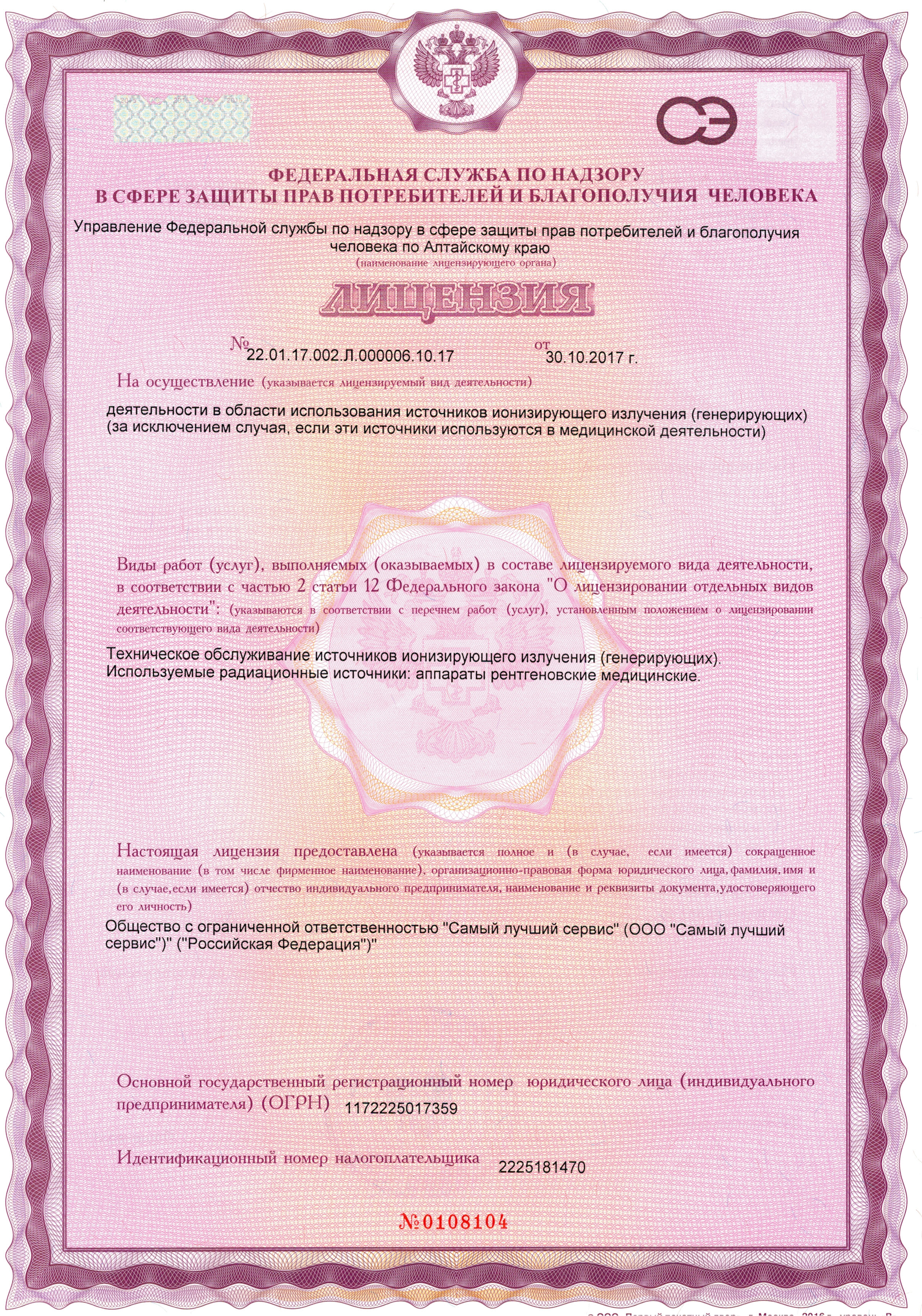 Лицензия на осуществление деятельности в области использования источников ионизирующего излучения